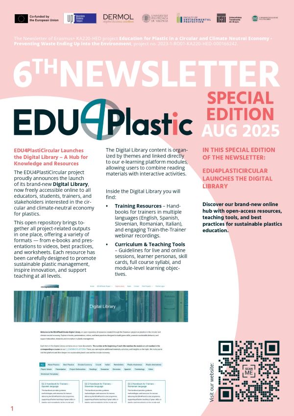 Izšla je že 6. izdaja novičnika EDU4PlastiCircular (avgust 2025 – posebna izdaja).